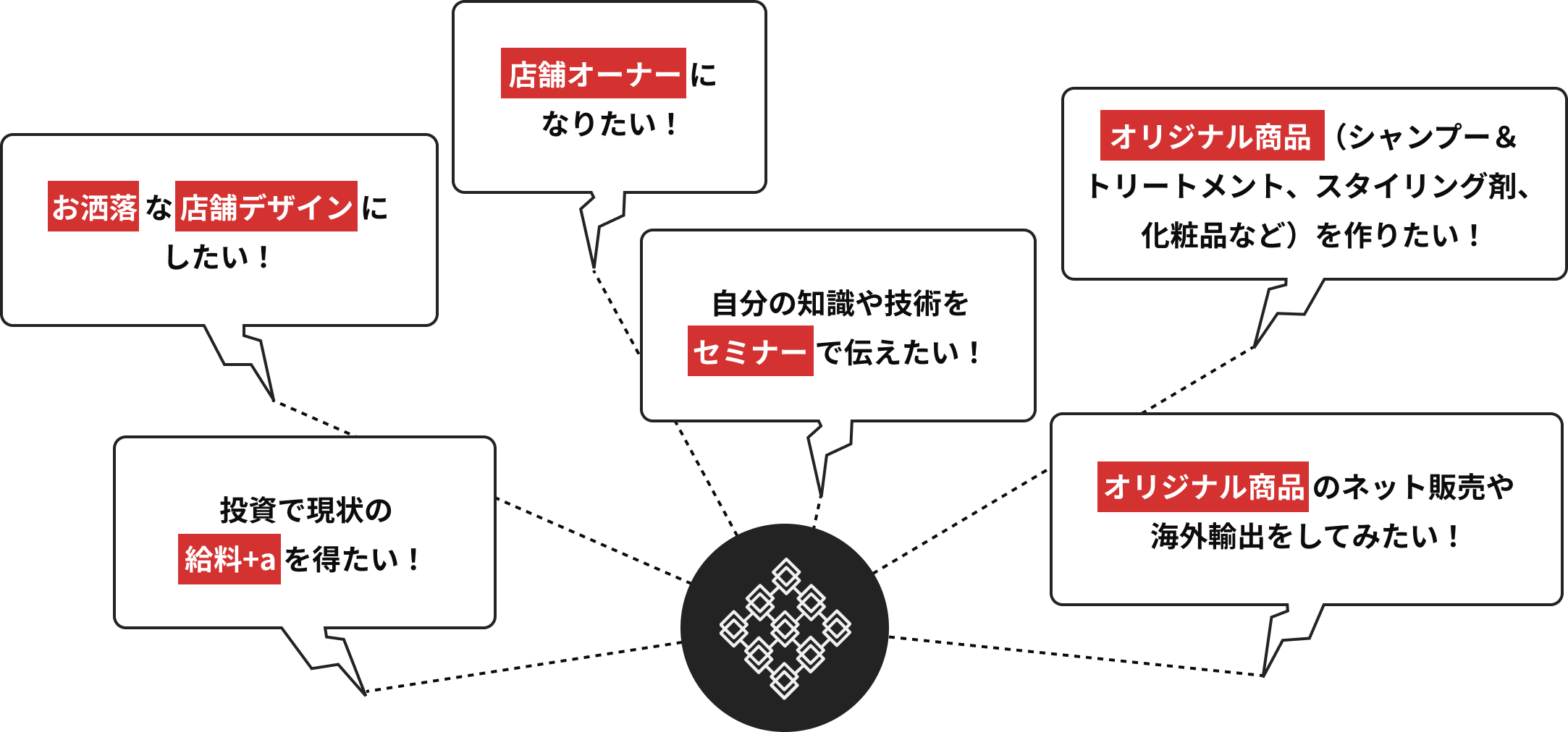 - オリジナル商品(シャンプー&トリートメント、スタイリング剤、化粧品など)を作りたい!